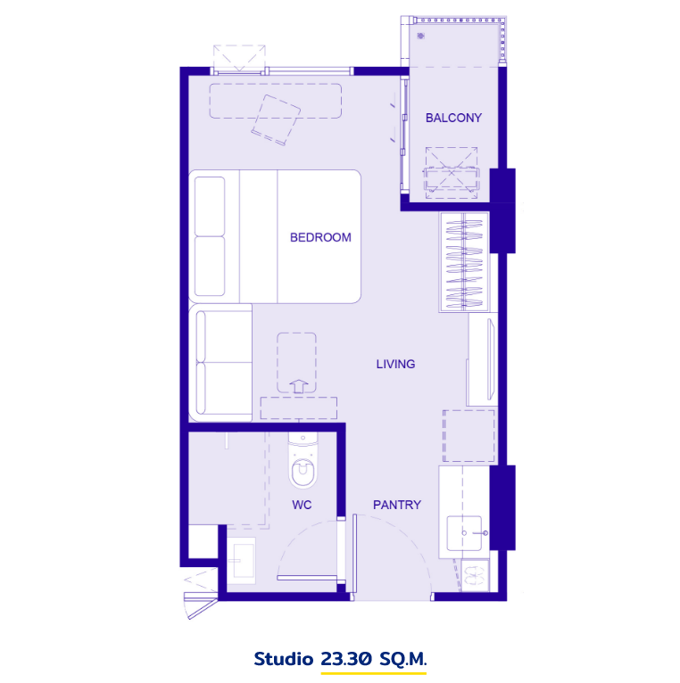 - Studio ขนาดพื้นที่ใช้สอย 23.30 ตร.ม.
