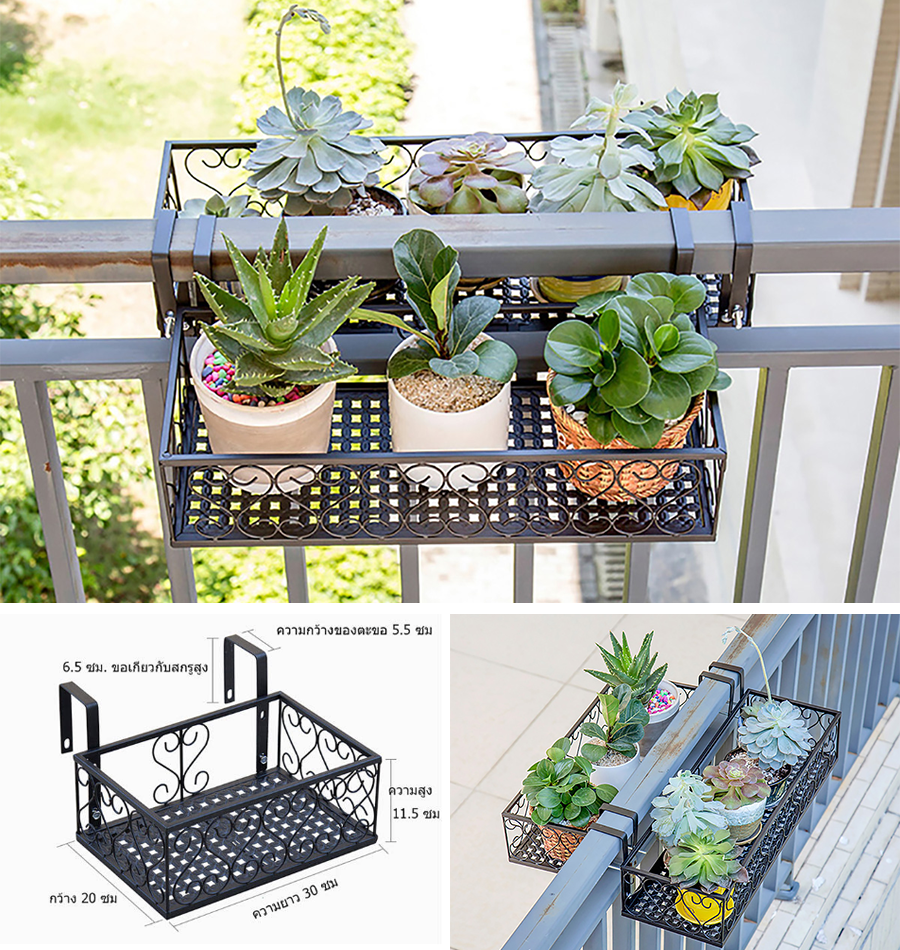 ชั้นวางต้นไม้ชนิดแขวนดีไซน์สวยสไตล์ยุโรป วัสดุเป็นสเตนเลส สามารถยึดติดกับระเบียงทำเป็นที่สำหรับวางกระถางต้นไม้ขนาดเล็กๆ ได้