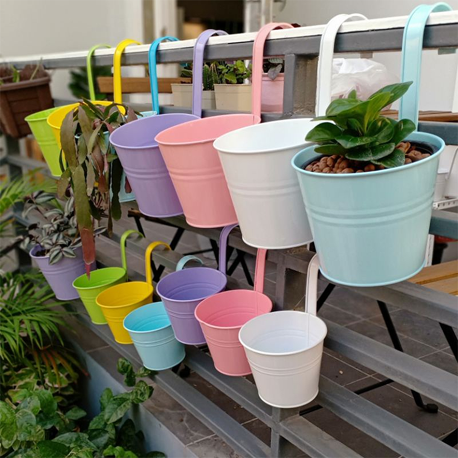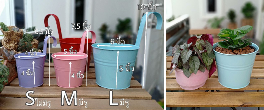 เพิ่มสีสันให้กับสวนสวยด้วยกระถางโลหะเคลือบสีแบบแขวนโทนสีพาสเทลหวานๆ มีรูระบายน้ำ ที่หูแขวนถอดได้ มีให้เลือก 3 ขนาด S, M และ L