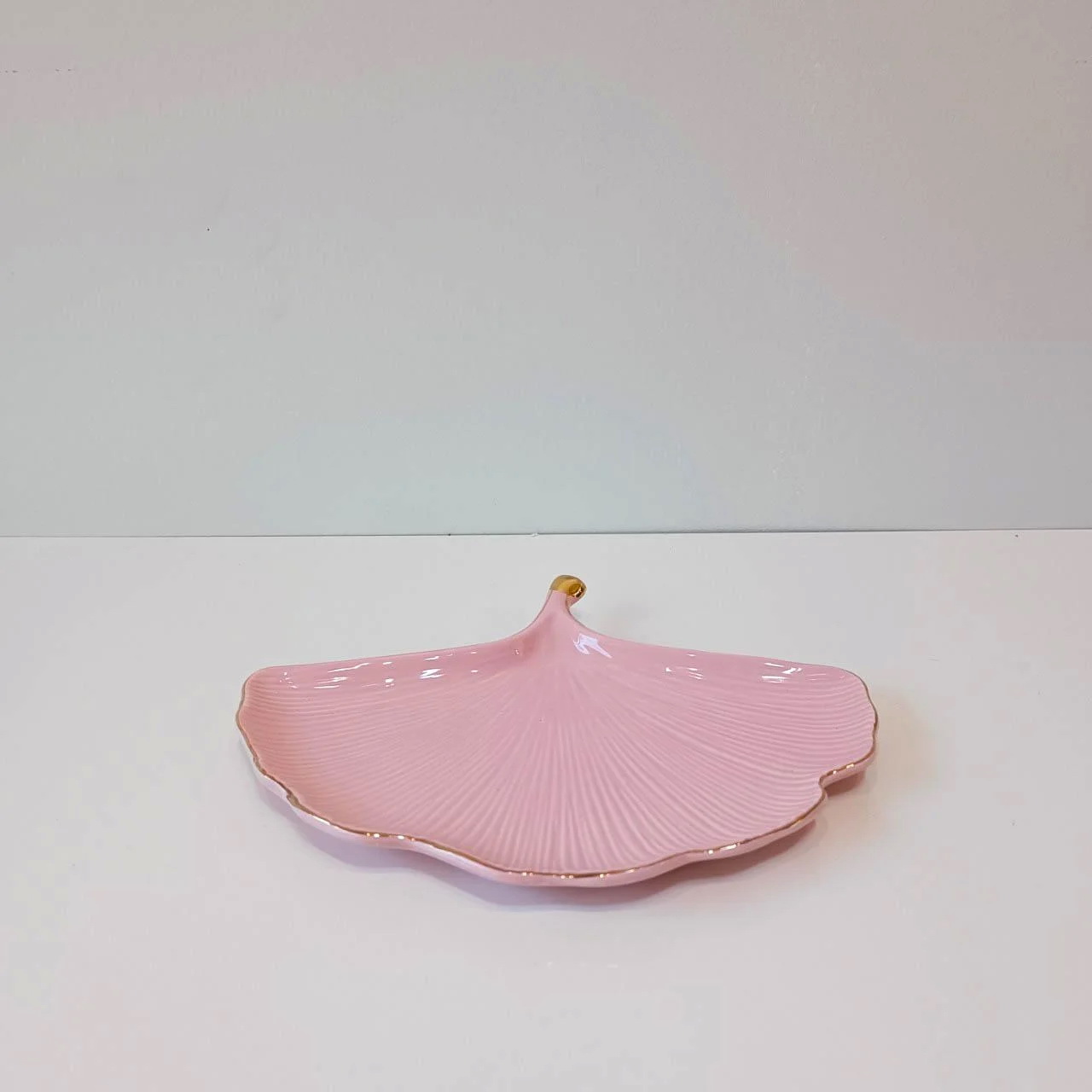 5. D'Atelier ถาดเซรามิคใบไม้สีชมพู