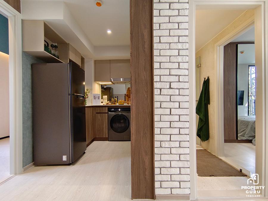1 Bedroom Plus 34.40-34.90 ตร.ม. เป็นห้องหน้ากว้างเกือบ 8 เมตร ห้องนอนจะอยู่ด้านขวา ส่วนทางซ้ายจะเป็นห้องพลัส เหมือนซื้อ 1 ห้องนอนแต่ได้ 2 ห้องนอน Built-in เคาน์เตอร์ครัวรูปตัว U ห้องนั่งเล่นได้เก้าอี้ 3 ตัวแบบห้องตัวอย่างช่วยประหยัดพื้นที่