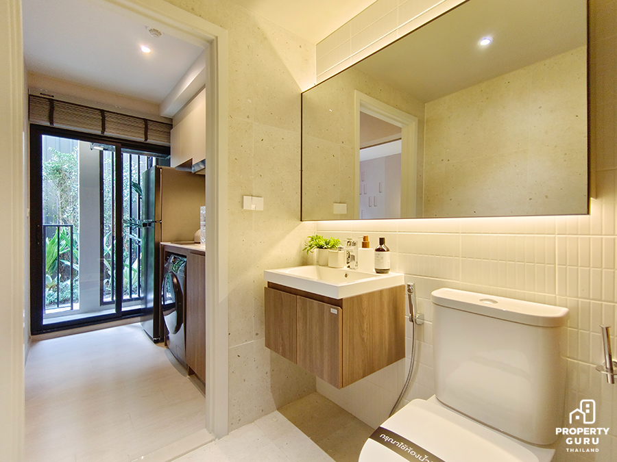 Studio 22.70-23.25 ตร.ม. ห้องมีความลึก 5 เมตร เพดานสูง 2.45 เมตร ฟังก์ชันครัวปิดประตูบานสไลด์ ได้เฟอร์นิเจอร์ครบ พร้อมเครื่องปรับอากาศ 1 เครื่อง