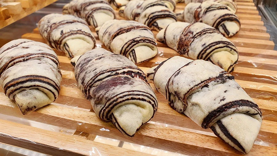 ครัวซองหนึบช็อกโกแลต เมนูยอดฮิตขายดีตลอดกาลของ Yamazaki ตอนนี้มีชื่อเล่นว่าครัวซองม้าลาย คนตามหากันแทบพลิกร้าน เพราะอบออกมาวางปุ๊บก็มักจะหมดภายในไม่กี่นาที ใครอยากลองชิมไปได้เลยที่ร้านยามาซากิทุกสาขา ตัวนี้ราคาชิ้นละ 18 บาท