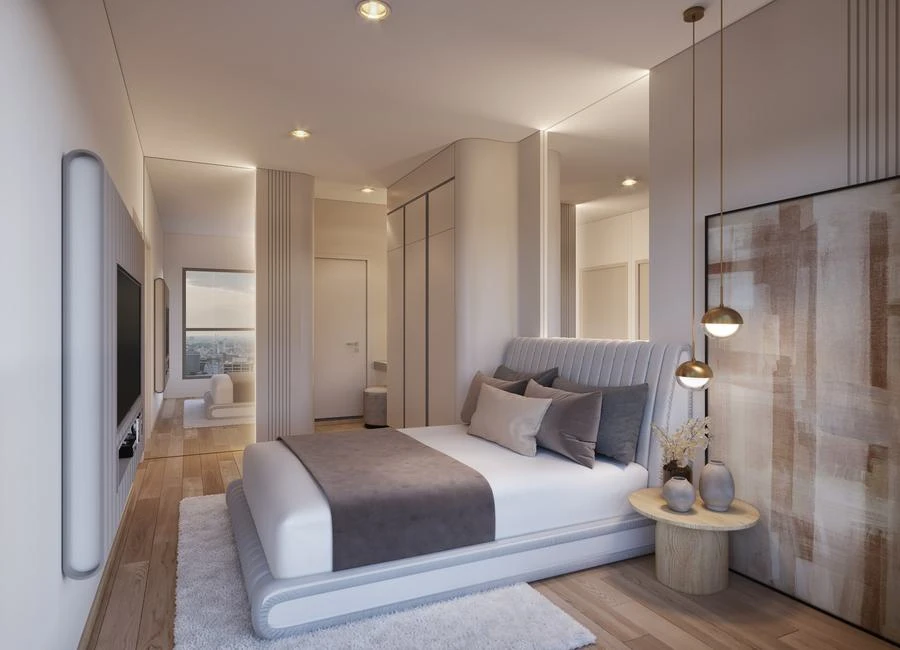ห้องนอนพร้อมหน้าต่างบานใหญ่