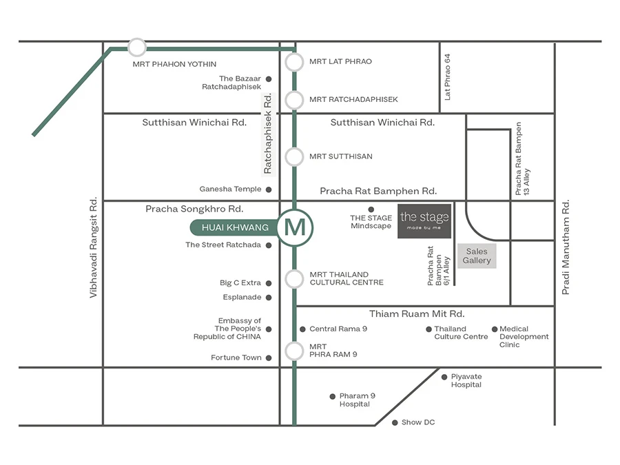 เดอะ สเตจ เมดบายมี รัชดา-ห้วยขวาง (THE STAGE made by me Ratchada-Huaikhwang) คอนโดมิเนียม ใกล้ MRT ห้วยขวางเพียง 300 เมตร อยู่ใจกลางรัชดา-ห้วยขวาง ทำเลศักยภาพไม่ว่าจะไปที่ไหนก็สะดวก และย่านห้วยขวางก็อุดมสมบูรณ์ไปด้วยอาหาร เป็นศูนย์รวมหม่าล่าหม้อไฟและตลาดนัดกลางคืนของกรุงเทพฯ ทำให้ย่านนี้คึกคักมาก