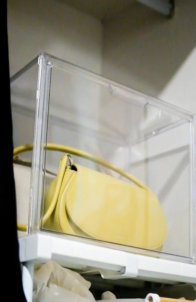 กล่องที่จะช่วยเก็บรักษากระเป๋าจากฝุ่นและโชว์กระเป๋าสุดเลิฟไปพร้อมกัน ฝาหน้าแบบแม่เหล็กใช้งานง่าย มีตัวล็อคข้างใต้ทำให้สามารถวางซ้อนได้หลายชั้นอย่างแนบสนิท