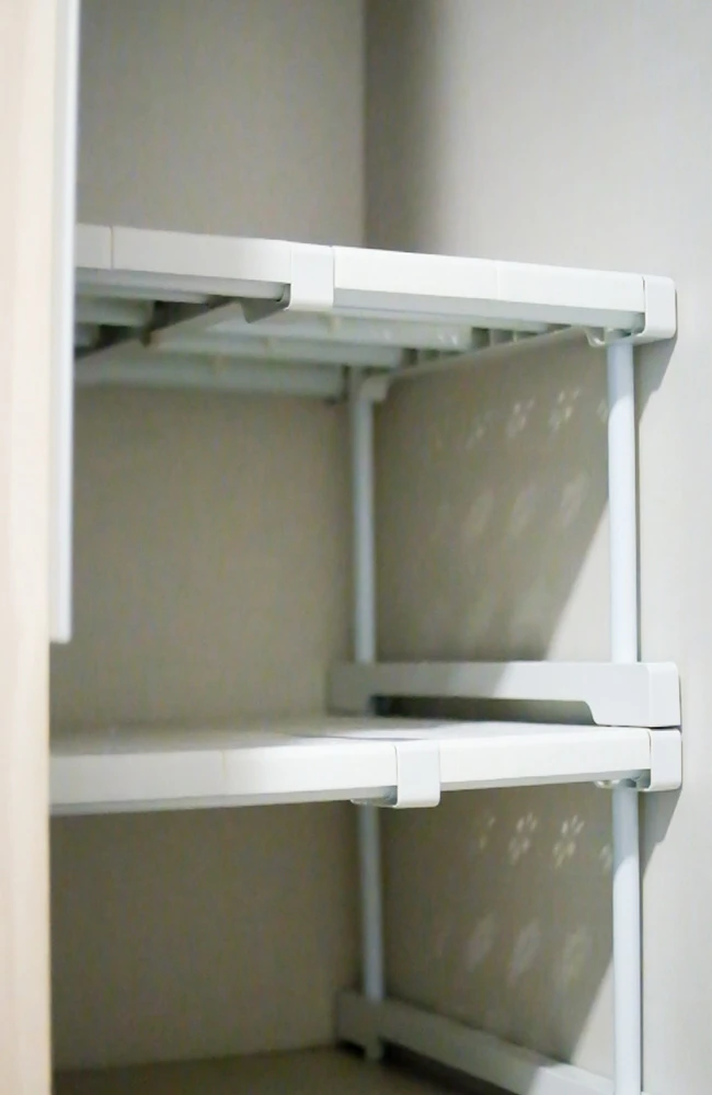 ชั้นวางที่จะช่วยแบ่งชั้นให้ภายในตู้ได้อย่างอิสระ เพราะสามารถยืดและหดได้ และต่อกันเป็นชั้นตามที่เราต้องการเลย รองรับน้ำหนักได้ดี ติดตั้งและย้ายที่ได้ง่าย เป็นระเบียบสัดส่วน