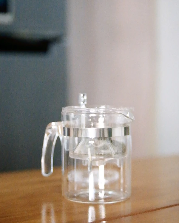 กาแก้วสำหรับกดชา ชงชาง่ายๆ เพียงใส่ใบชาในที่กรอง เติมน้ำร้อน แช่ใบชาไว้ประมาณ 3 นาที และกดปุ่มด้านบนก็สามารถรินชาดื่มได้เลย เหมาะกับช่วงเช้าที่ต้องเร่งรีบในการเตรียมเครื่องดื่ม