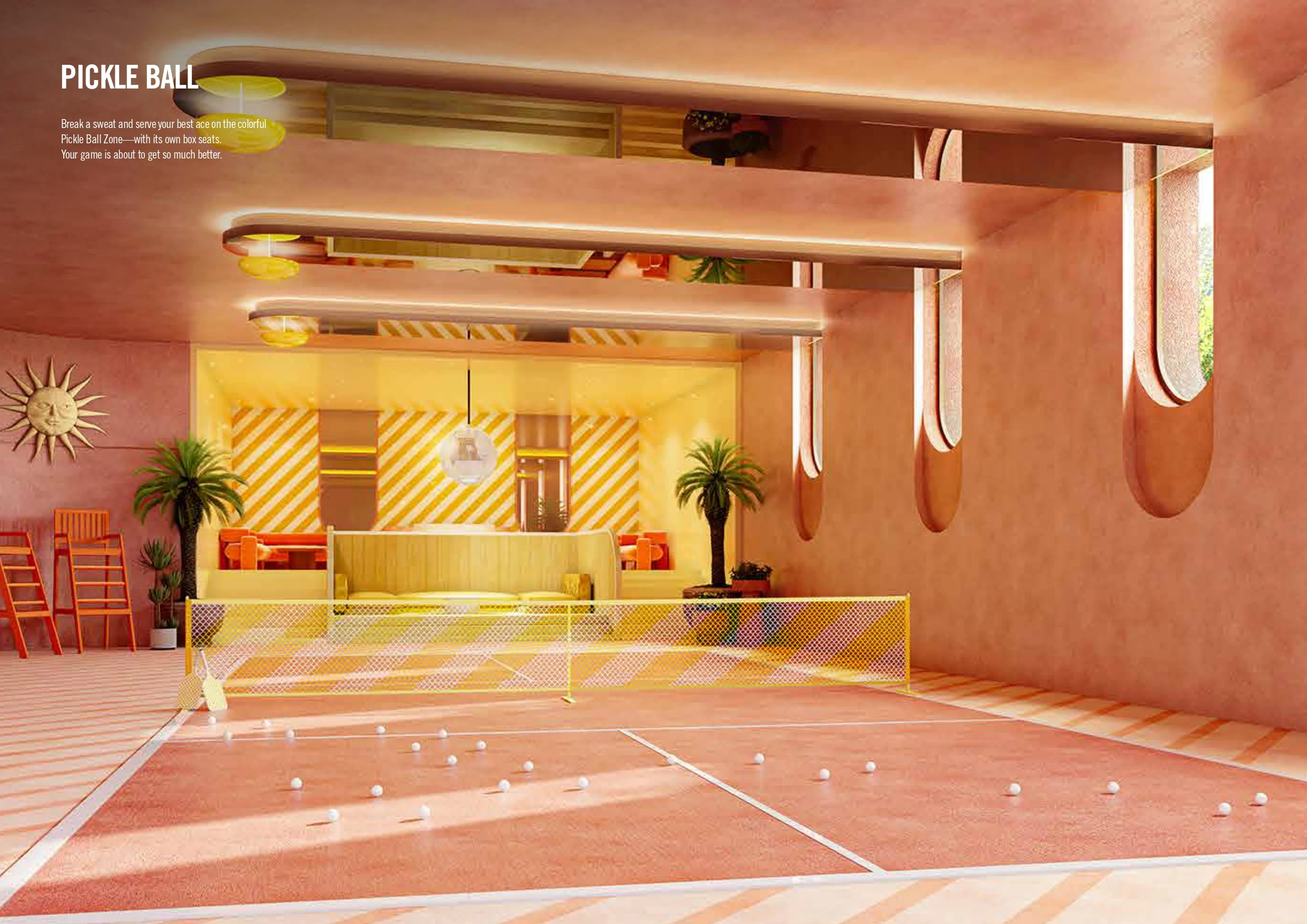 - อาคารบีชคลับพร้อมเลานจ์ห้องเล่นเกมและโรงละครในร่ม