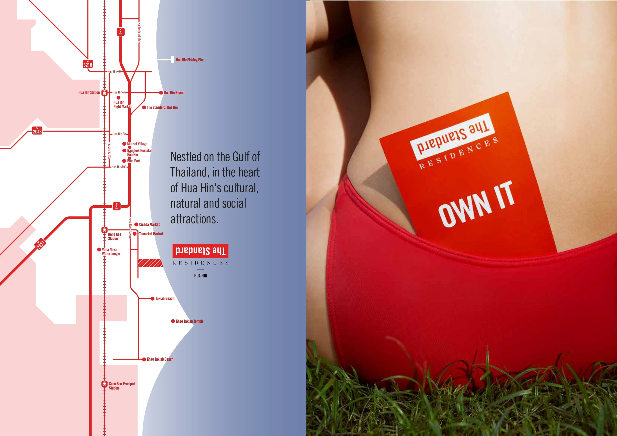 เดอะ สแตนดาร์ด เรสซิเดนซ์ หัวหิน (The Standard Residences, Hua Hin) ตั้งอยู่บน Prime Location ติดชายหาดหัวหิน เงียบสงบ เป็นส่วนตัว รายล้อมด้วยแหล่งอำนวยความสะดวก ทั้งแหล่งชอปปิง อย่าง ตลาดซิเคด้า (Cicada Market) , Tamarind Night Market (ตลาดแทมมารีน), market village ใกล้โรงพยาบาลกรุงเทพหัวหิน และใกล้กับสถานีรถไฟหนองแก