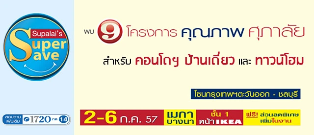 ศุภาลัยขอเชิญร่วมงาน Supalai's Super Save พบ 9 โครงการคุณภาพศุภาลัย 2-6 ก.ค. 57