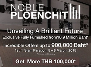 โนเบิล เพลินจิต (Noble Ploenchit) คอนโดแต่งครบ ราคาเริ่มต้น 10.9 ล้านบาท จองวันนี้รับส่วนลดทันที 900,000 บาท สนใจเข้าชมบูธโครงการหรือสอบถามรายละเอียดเพิ่มเติมได้ที่ ชั้น 1 สยามพารากอน วันที่ 5-8 มีนาคม 2558 นี้เท่านั้น !