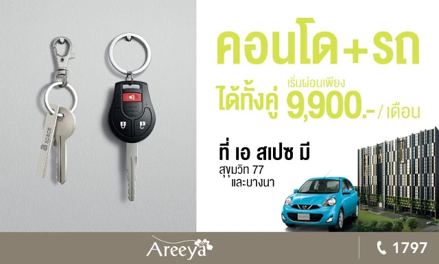 อารียาให้คุณเป็นเจ้าของคอนโด + รถ เริ่มผ่อนเพียง 9,900 บาท ที่ เอ สเปซ มี สุขุมวิท 77 หรือ บางนา