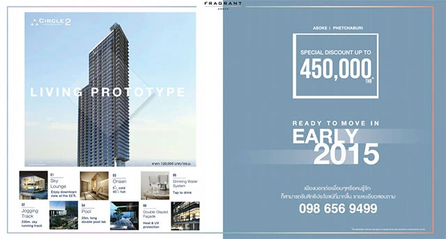 บริษัท เฟรเกรนท์ พร็อพเพอร์ตี้ จำกัด จัดโปรโมชั่นกับโครงการ เซอร์เคิล 2 (Circle 2) รับ Special Discount สูงสุด 450,000 บาท* สำหรับห้องพักอาศัยแบบ 1 ห้องนอน และเพียงบอกต่อเพื่อน หรือคนรู้จักก็สามารถรับสิทธิประโยชน์เพิ่มเติม