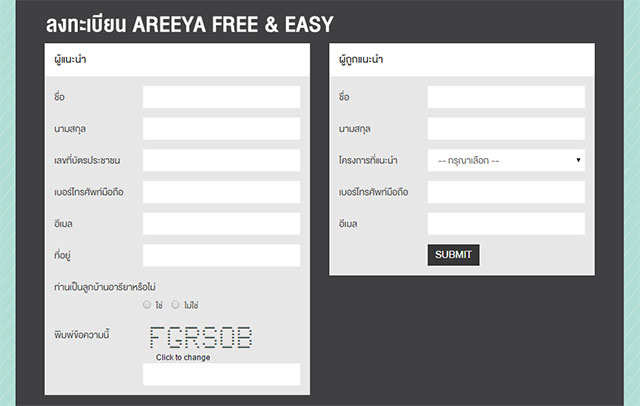 - ข้อมูลที่เกี่ยวข้องในโครงการ Areeya Free & Easy ที่จะเข้าสู่การพิจารณาเพื่อรับค่าแนะนำต้องเป็นข้อมูลจริง และได้มาโดยสุจริต