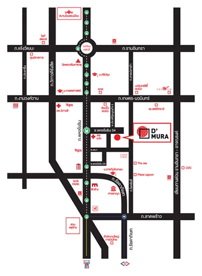 D' Mura Ratchayothin (ดี' มูระ รัชโยธิน) ตั้งอยู่ภายในซอยเสนานิคม 2 ใกล้มหาวิทยาลัยเกษตรศาสตร์ ห่างจากปากซอย ประมาณ 1 กม. มีห้องพักอาศัยแบบ 1-2 ห้องนอน เริ่ม 1.XX ล้าน สำหรับผู้ที่สนใจ สามารถลงทะเบียนเพื่อรับข้อมูลข่าวสารและสิทธิพิเศษได้ตามลิงก์ด้านล่างนี้ค่ะ