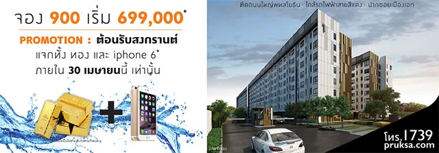 บริษัท พฤกษา เรียลเอสเตท จำกัด (มหาชน) จัดโปรโมชั่นคลายร้อน ต้อนรับสงกรานต์ พลัม คอนโด พหลโยธิน 89 (Plum Condo Paholyothin) แจกทั้งทอง และ iPhone 6 จองแค่ 900 บาท เริ่มเพียง 699,000 บาท