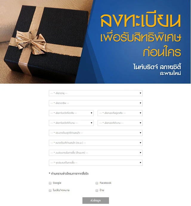 สำหรับผู้ที่สนใจโครงการ ไนท์บริดจ์ สกายซิตี้ สะพานใหม่ (Knightsbridge Skycity Saphanmai) สามารถลงทะเบียนเพื่อรับข้อมูลข่าวสารและสิทธิพิเศษได้ตามลิงก์ด้านล่างนี้