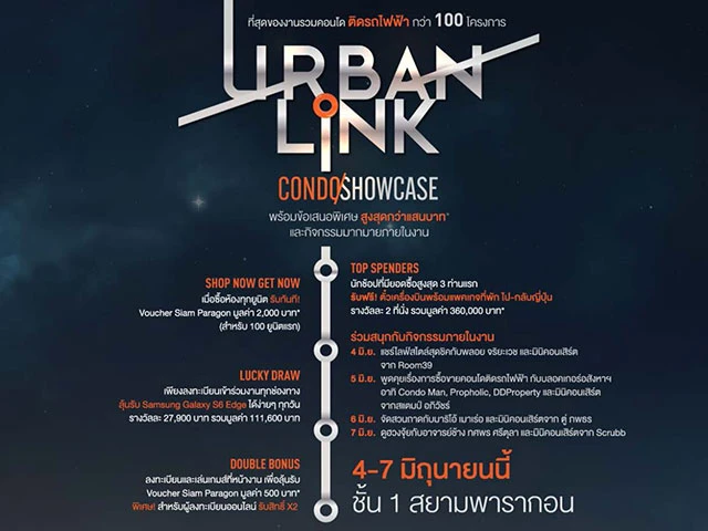 โดยการจัดงาน Urban Link Condo Showcase ที่สุดของงานรวมคอนโดติดรถไฟฟ้ากว่า 100 โครงการ ที่รวบรวมทั้งคอนโดมือหนึ่ง โครงการ ภายใต้แบรนด์ "ไอดีโอ" ทั้งพร้อมอยู่ และเหมาะกับการลงทุนรวมทั้งสิ้นกว่า 1,600 ยูนิต บนทำเลติดรถไฟฟ้ายอดนิยม ทั้ง 5 โซน ได้แก่ โซน 1 เชื่อมต่อเมือง สามย่าน-ช่องนนทรี-สุรศักดิ์-สะพานตากสิน โซน 2 ฝั่งธนบุรีเกาะส่วนต่อขยาย โซน 3 สุขุมวิทตอนต้น-กลาง โซน 4 สุขุมวิทตอนปลาย และ โซน 5 ชุมชนเก่าแก่ กำลังซื้อสูงอย่างพญาไท-สะพานควาย