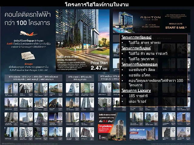 พร้อมโปรโมชั่นเมื่อซื้อห้องทุกยูนิต รับทันที!! Voucher Siam Paragon มูลค่า 2,000 บาท* (สำหรับ 100 ยูนิตแรก) และเพียงลงทะเบียนเข้าร่วมงานทุกช่องทาง ลุ้นรับ!! Samsung Galaxy S6 Edge ทุกวัน รวมมูลค่ากว่า 111,600 บาท พร้อมร่วมสนุกกับกิจกรรมมากมาย อาทิ เกมบริเวณหน้างานลุ้นรับ Voucher Siam Paragon มูลค่า 500 บาท* ชมมินิคอนเสิร์ตจาก ศิลปิน Room39 สแตมป์ อภิวัชร์ ตู่ ภพธร และ Scrubb และที่สุดสำหรับนักช้อปที่มียอดซื้อสูงสุด 3 ท่านแรก รับฟรี!! ตั๋วเครื่องบินพร้อมแพคเกจที่พัก ไป-กลับญี่ปุ่น รางวัลละ 2 ที่นั่ง รวมมูลค่ากว่า 360,000 บาท* (*เป็นไปตามเงื่อนไขของบริษัทฯ) คาดว่างานนี้จะได้รับการตอบรับเป็นอย่างดีจากผู้สนใจ โดยคาดว่าจะทำยอดขายได้ 500 ล้านบาท โดยงานจะจัดขึ้นระหว่างวันที่ 4-7 มิถุนายน 2558 ที่ลาน Fashion Hall ชั้น 1 สยาม พารากอน