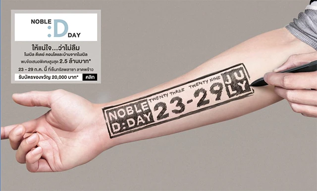 สำหรับผู้ที่สนใจ โปรโมชั่นภายในงาน Noble D:Day สามารถลงทะเบียนเพื่อรับบัตรของขวัญ 20,000 บาท ได้ตามลิงก์ด้านล่างนี้ค่ะ