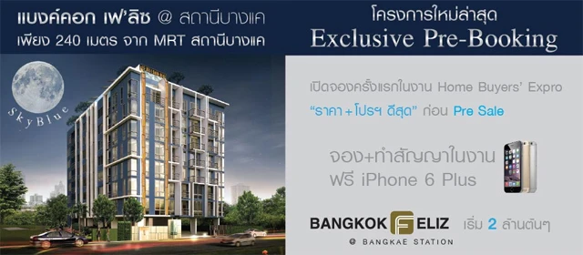 1. แบงค์คอก เฟ'ลิช @สถานีบางแค โครงการใหม่ล่าสุด เพียง 240 เมตร จาก MRT สถานีบางแค ราคาเริ่มที่ 2 ล้านต้นๆ