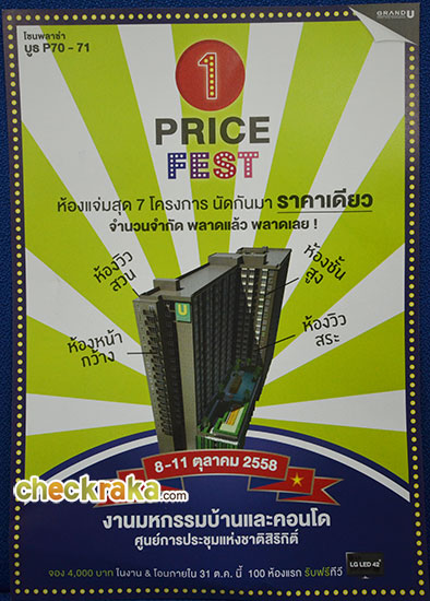 Grand U ส่งโปรโมชั่น 1 Price Fest ห้องแจ่มสุด นัดกันมา ราคาเดียว จำนวนจำกัด พลาดแล้ว พลาดเลย ! ขนคอนโดในหลากหลายทำเลคุณภาพ รวม 7 โครงการมาร่วมงาน