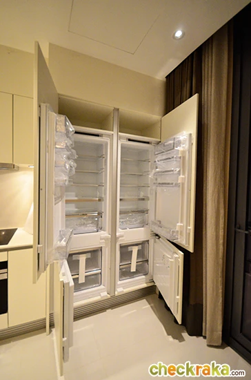 ติดกันกับเคาน์เตอร์ครัว เป็นตู้เย็นแบบบิวท์อิน ยี่ห้อ Siemens ปิดผิวด้วย Poggen Pohl เช่นกัน