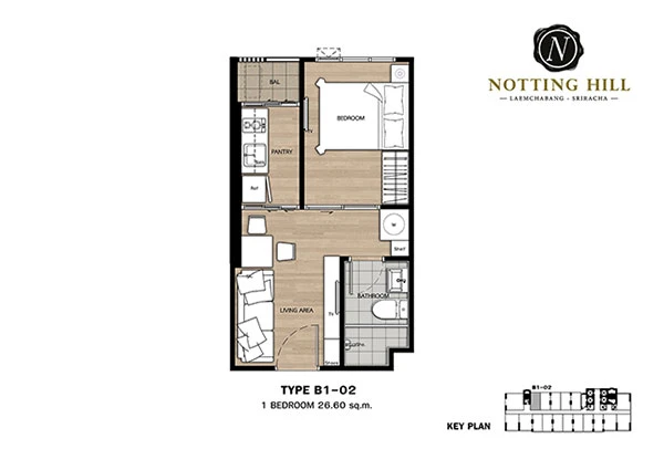 Notting Hill แหลมฉบัง - ศรีราชา เป็นคอนโดที่ออกแบบภายใต้คอนเซปต์ Modern Luxury ผสมผสานความทันสมัยกับความหรูหราอย่างลงตัว พร้อมแต่งแต้มลายเส้นสถาปัตยกรรมให้ได้กลิ่นอาย Vintage ซึ่งเป็นเอกลักษณ์ของแบรนด์ Notting Hill งานออกแบบตกแต่งภายใน รวมถึงการเลือกใช้เฟอร์นิเจอร์ โทนสีน้ำตาล ดำ เทา มาเป็นธีมหลักในการตกแต่งเพื่อถ่ายทอดบรรยากาศแห่งความหรูหราทันสมัย โดยโครงการนี้เป็นคอนโดแบบ High Rise ขนาดที่ดิน 2-0-67 ไร่ มีความสูง 36 ชั้น 1 อาคาร จำนวน 534 ยูนิต เป็นห้องแบบ Studio และ 1 ห้องนอน เริ่มตั้งแต่ 25.70 - 45 ตร.ม. มีพื้นที่จอดรถประมาณ 37.3 % คาดว่าจะแล้วเสร็จ ปี 2018 และประกอบด้วย Facilities จัดเต็ม เช่น