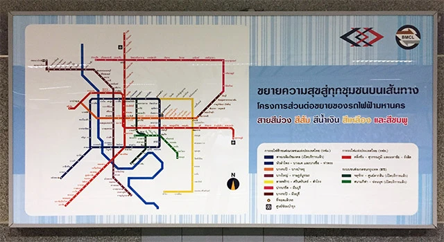 แผนที่แสดงเส้นทางรถไฟฟ้าส่วนต่อขยายของรถไฟฟ้ามหานคร