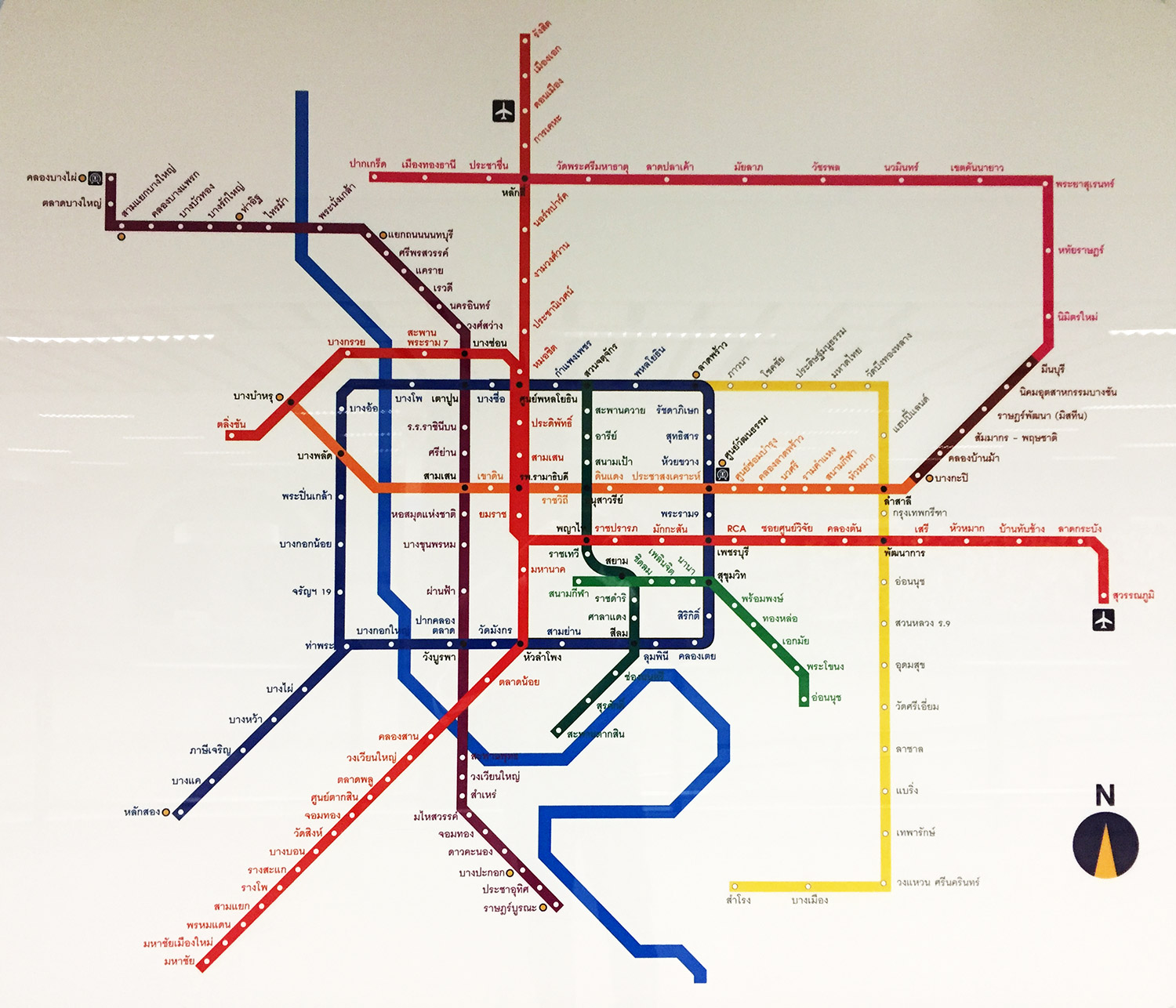 สายสีม่วง, สีส้ม, สีน้ำเงิน, สีเหลือง และสีชมพู