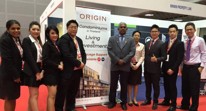 บริษัท ออริจิ้น พร็อพเพอร์ตี้ จำกัด (มหาชน) นำโดย นายแพรี่ จอง พรี่ จอง ผู้จัดการฝ่ายการตลาดต่างประเทศ (ที่ 3 จากขวา) นำคอนโดคุณภาพพร้อมอยู่ 5 โครงการ ได้แก่ ไนท์บริดจ์ แบริ่ง (KnightsBridge Bearing), พอส สุขุมวิท 103 (PAUSE SUKHUMVIT 103), พอส สุขุมวิท 107 (Pause Sukhumvit 107) และ ไนท์บริดจ์ ดิ โอเชี่ยน ศรีราชา (Knightsbridge the Ocean Sriracha) ร่วมงาน Star Property MYi Fair เมืองกัวลาลัมเปอร์ ประเทศมาเลเซีย เพื่อประชาสัมพันธ์โครงการคุณภาพของออริจิ้น รวมถึงการลงทุนอสังหาริมทรัพย์ในประเทศไทย