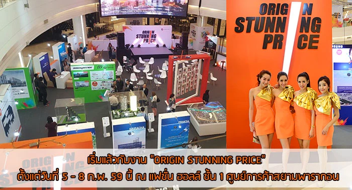 เริ่มแล้วกับงาน "ORIGIN STUNNING PRICE" โดย บริษัท ออริจิ้น พร็อพเพอร์ตี้ จำกัด (มหาชน) ขนคอนโดพร้อมอยู่ แนวรถไฟฟ้า เพื่อรับมาตรการรัฐ กับ โปร STRONG! พบกับ 9 Projects - Ready To Move In, 3 Projects Pre Sales, 2 Project Sriracha และ 3 Location ใหม่จาก Notting Hill พร้อมส่วนลดสูงสุด 30% เริ่ม 1.29 ล้านบาท และข้อเสนอพิเศษแบบจัดหนักจัดเต็ม เฉพาะภายในงานตั้งแต่วันที่ 5 - 8 ก.พ. 59 นี้ ณ แฟชั่น ฮอลล์ ชั้น 1 ศูนย์การค้าสยามพารากอน พบกับไฮไลท์พิเศษประจำวัน ฉลองเทศกาลตรุษจีนกับ มินิคอนเสิร์ต โจ-ก้อง และอาจารย์จตุพล