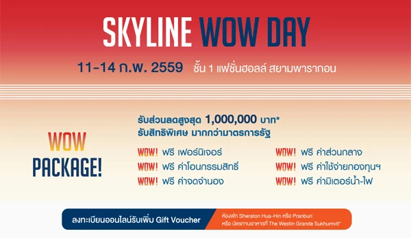 PF เตรียมจัดงาน "SKYLINE WOW DAY" ว้าว! กับคอนโดหรูติดรถไฟฟ้า ณ สยามพารากอน 11-14 ก.พ. นี้