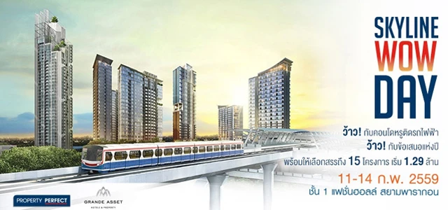 บริษัท พร็อพเพอร์ตี้ เพอร์เฟค จำกัด (มหาชน) ผู้ดำเนินโครงการอสังหาริมทรัพย์ชั้นนำของเมืองไทย จัดงาน "SKYLINE WOW DAY" ในวันที่ 11-14 ก.พ. นี้ ณ ชั้น 1 แฟชั่นฮอลล์ ศูนย์การค้าสยามพารากอน ว้าว! กับคอนโดหรูติดรถไฟฟ้า ว้าว! กับข้อเสนอแห่งปี เพื่อคุณ... เป็นเจ้าของชีวิตแบบเพอร์เฟคได้ง่ายขึ้น พร้อมให้เลือกสรรถึง 15 โครงการ อาทิ