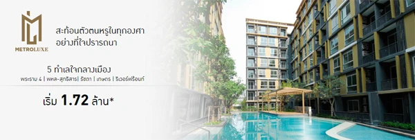 - Metroluxe คอนโดหรูบน 5 ทำเลใจกลางกรุงเมือง พระราม 4, พหล-สุทธิสาร, รัชดา, เกษตร, ริเวอร์ฟร้อนท์ ฟรีเฟอร์นิเจอร์ และฟรี ค่าใช้จ่าย ณ วันโอน 5 รายการ