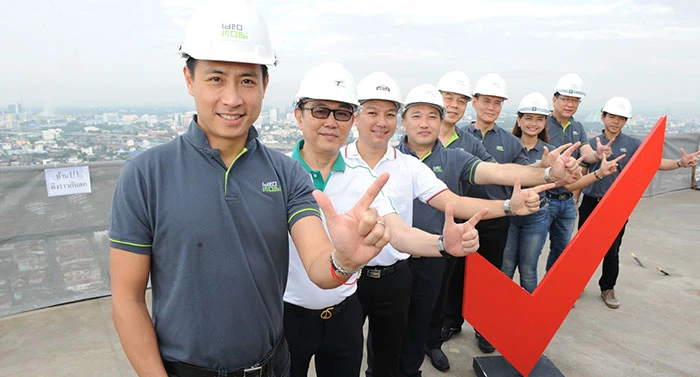 คุณชานนท์ เรืองกฤตยา (ที่ 1 จากซ้าย) ประธานเจ้าหน้าที่บริหาร และกรรมการผู้จัดการใหญ่ บริษัท อนันดา ดีเวลลอปเม้นท์ จำกัด (มหาชน) พร้อมด้วยคุณวีระศักดิ์ วานิชวัฒน์ (ที่ 2 จากซ้าย) กรรมการผู้จัดการ บริษัท ฑีฆาก่อสร้าง จำกัด ผู้รับเหมางานก่อสร้าง และคุณสุทัศน์ แก้วเก้า (ที่ 3 จากซ้าย) ผู้อำนวยการโครงการ บริษัท เอบิวด์ แมเนจเมนท์ จำกัด บริษัทที่ปรึกษา และควบคุมงานก่อสร้าง ถ่ายภาพ Top Up ร่วมกันบนชั้นดาดฟ้าโครงการไอดีโอ โมบิ วงศ์สว่าง อินเตอร์เชนจ์ (Ideo Mobi Interchange) ในโอกาสเข้าตรวจความคืบหน้าการก่อสร้างโครงการ และควบคุมการก่อสร้างให้ได้มาตรฐาน