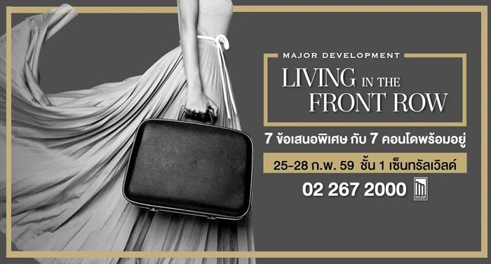 บริษัท เมเจอร์ ดีเวลลอปเม้นท์ จำกัด (มหาชน) ผู้พัฒนาคอนโดมิเนียมระดับไฮเอนด์ จัดโปรโมชั่นสุดพิเศษสำหรับผู้ที่กำลังมองหาคอนโดมิเนียม ทั้งเพื่อการอยู่อาศัย และเพื่อการลงทุน กับงาน "Living in The Front Row" พบข้อเสนอพิเศษที่คุณจะปฏิเสธไม่ลง กับ 7 คอนโดพร้อมอยู่ ไม่ว่าจะเป็น เอ็ม พญาไท, เอ็ม สีลม, เอ็ม ลาดพร้าว, มาเอสโตร 02, มาเอสโตร 12, มาเอสโตร 39 และ รีเฟลคชั่น จอมเทียน บีช พัทยา โดยงานจะจัดขึ้นบริเวณเซ็นทรัลคอร์ท ชั้น 1 เซ็นทรัลเวิลด์ ระหว่างวันที่ 25-28 ก.พ. 59 นี้ภายในงานพบกับ 7 ข้อเสนอสุดพิเศษ อาทิ