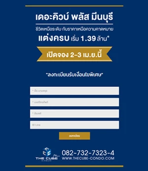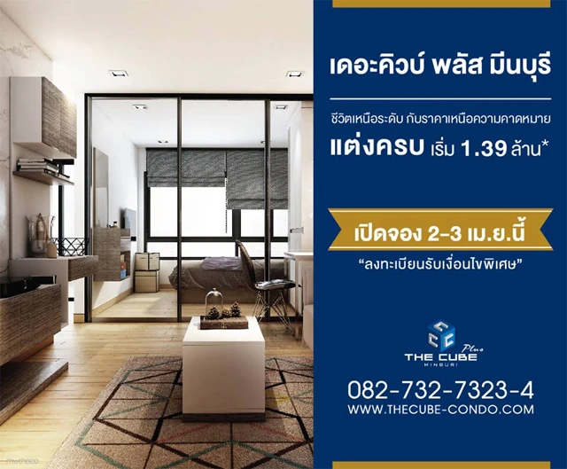 เตรียมพบกับคอนโดโครงการใหม่ "เดอะ คิวบ์ พลัส มีนบุรี" ชีวิตเหนือระดับ กับราคาเหนือความคาดหมาย กับห้องแต่งครบ และส่วนกลางแบบจัดเต็ม เปิดจอง 2-3 เมษายนนี้
