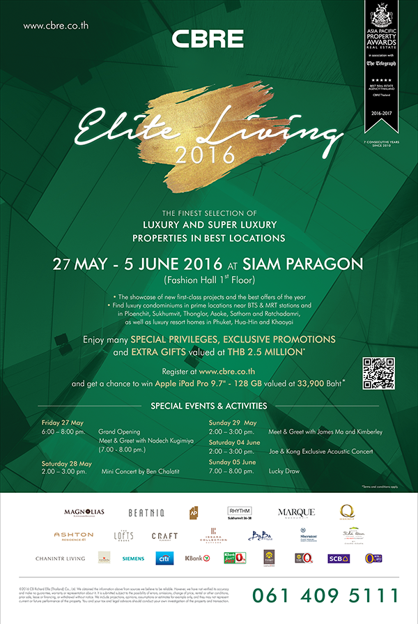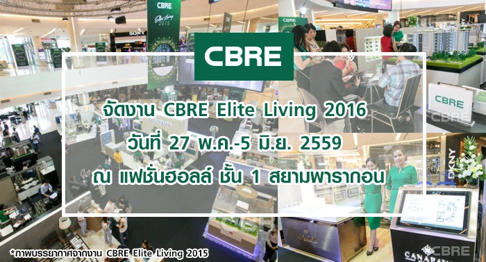 "CBRE Elite Living 2016" วันที่ 27 พ.ค.-5 มิ.ย. 2559 ณ แฟชั่นฮอลล์ ชั้น 1 สยามพารากอน