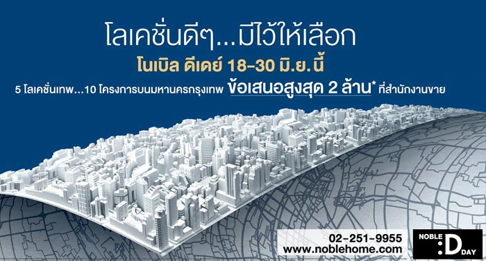 กลับมาอีกครั้ง กับ งาน "โนเบิล ดีเดย์" พบ 5 โลเคชั่นเทพ กับ 10 โครงการ วันที่ 18 - 30 มิ.ย. นี้