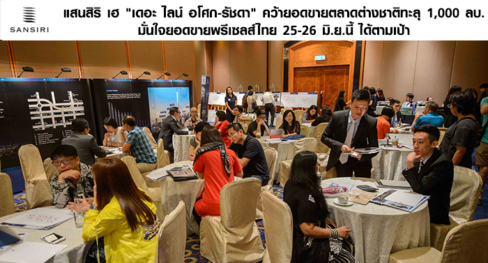 นายอุทัย อุทัยแสงสุข รองกรรมการผู้จัดการอาวุโสสายงานพัฒนาธุรกิจและพัฒนาโครงการคอนโดมิเนียม บริษัท แสนสิริ จำกัด (มหาชน) เปิดเผยว่า บริษัทสามารถสร้างยอดขายจากตลาดต่างชาติในการโรดโชว์โครงการ เดอะ ไลน์ อโศก-รัชดา ซึ่งเป็นคอนโดมิเนียมโครงการล่าสุด ในช่วงเสาร์-อาทิตย์ที่ 11-12 มิถุนายนที่ผ่านมาที่ประเทศฮ่องกง สิงคโปร์ ไต้หวัน และจีน ได้เป็นมูลค่าทะลุกว่า 1,000 ล้านบาท ซึ่งนับว่าเป็นมูลค่าสูงที่สุดที่บริษัทเคยทำได้จากการสร้างยอดขายตลาดต่างชาติในขณะนี้ และเกินจากเป้าโควต้าขายตลาดต่างชาติที่วางไว้ โดยมีลูกค้าให้ความสนใจเข้าร่วมงานโรดโชว์ในต่างประเทศจำนวนมาก