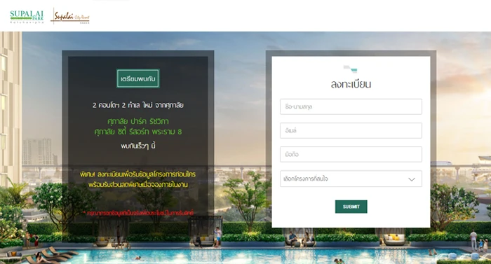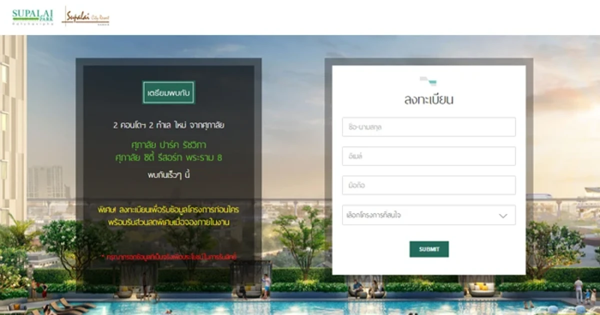 บริษัท ศุภาลัย จำกัด (มหาชน) เตรียมเปิดตัว 2 คอนโดฯ 2 ทำเลใหม่ "ศุภาลัย ปาร์ค รัชวิภา" และ "ศุภาลัย ซิตี้ รีสอร์ท พระราม 8" พร้อมเปิดให้ลงทะเบียนเพื่อรับข้อมูลโครงการก่อนใคร และรับส่วนลดพิเศษเมื่อจองภายในงาน