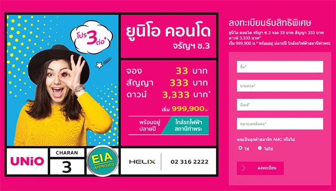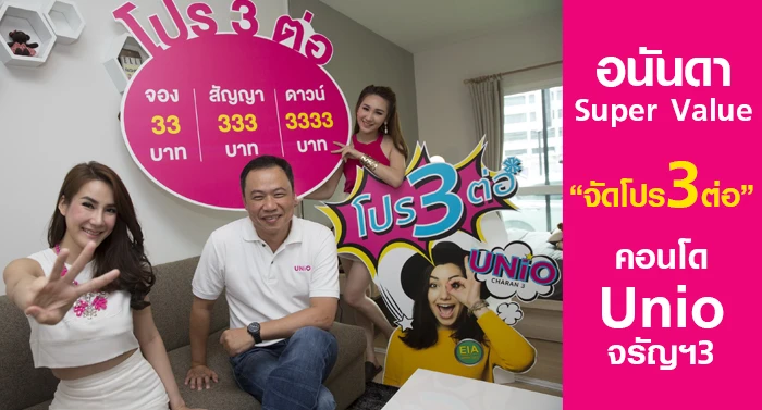 อนันดาฯ ส่ง Super Value คอนโด "UNIO จรัญฯ 3" จัดโปรโมชั่นสุดฮอต "โปรฯ 3 ต่อ"