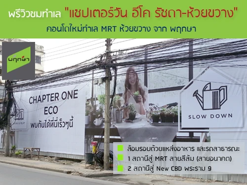 "แชปเตอร์ วัน อีโค รัชดา-ห้วยขวาง (Chapter One Eco Ratchada-Huai Khwang)" คอนโดมิเนียมโครงการใหม่จาก บริษัท พฤกษา เรียลเอสเตท จํากัด เป็นคอนโดมิเนียมแบบ High Rise บนถนนถนนประชาอุทิศ (ห้วยขวาง) ทำเลใกล้รถไฟฟ้า MRT สายสีน้ำเงิน สถานีห้วยขวาง เปิดให้ลงทะเบียนรับข้อมูลโครงการก่อนใครแล้ววันนี้ (ดูพรีวิวชมทำเล แชปเตอร์ วัน อีโค รัชดา-ห้วยขวาง ได้ที่นี่)