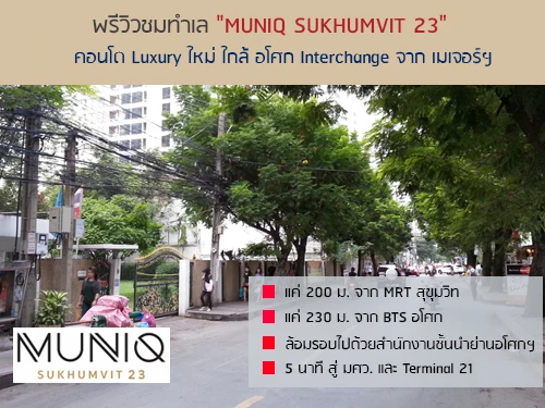"MUNIQ Sukhumvit 23 (มิวนีค สุขุมวิท 23)" โครงการใหม่จากบริษัท เมเจอร์ ดีเวลลอปเม้นท์ จำกัด เป็นคอนโดมิเนียม High-Rise ดีไซด์สุดหรู ใจกลางเมือง เพียบพร้อมด้วยสิ่งอำนวยความสะดวกระดับ Luxury ตั้งอยู่ภายในซอยประสานมิตร (สุขุมวิท 23) ใกล้รถไฟฟ้า BTS รถไฟฟ้า MRT และแหล่งช้อปปิ้งสำคัญย่านอโศก ราคาเริ่มต้น 6.9 ล้านบาท เปิดให้ลงทะเบียนจองสำหรับรอบ EXCLUSIVE PRE-SALE แล้ววันนี้ พร้อมเปิดจองจริงวันที่ 17-18 ก.ย. 59 (ดูพรีวิวชมทำเลโครงการ มิวนีค สุขุมวิท 23 ได้ที่นี่)