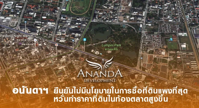 อนันดาฯ ยืนยันไม่มีนโยบายในการซื้อที่ดินแพงที่สุด หวั่นทำราคาที่ดินในท้องตลาดสูงขึ้น
