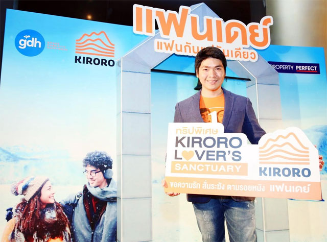 คิโรโระ รีสอร์ท ถูกเลือกเป็นโลเคชั่นหลักหนัง "แฟนเดย์ แฟนกันแค่วันเดียว" เรื่องแรกของค่ายจีดีเอช เปิดมุมสวยทั่วสกีรีสอร์ทใช้เป็นสถานที่ถ่ายทำ พร้อมจับมือการบินไทย และ สยามทราเวล เปิดตัว แพคเก็จทัวร์ตามรอยหนัง พิเศษสุด! แจกฮันนีมูนแพคเก็จสำหรับคู่รักที่ไปท่องเที่ยวตามรอยแล้วแต่งงานภายใน 3 เดือน