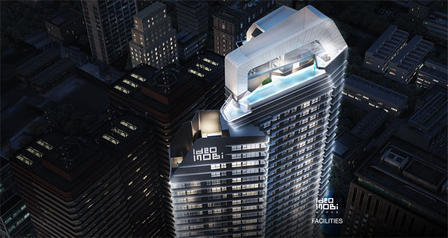 - Panoramic Sky Pool สระว่ายน้ำในรูปแบบ Infinity Edge Pool พร้อมดื่มด่ำบรรยากาศวิวเมืองแบบ Panorama ที่เล่นระดับถึง 3 ระดับชั้น (scenic deck, lap pool และ Jacuzzi) พร้อม surprise elements ต่างๆ เช่น Illuminated Swim Lane และ Under Water Sound System