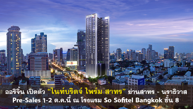 ออริจิ้น เปิดตัว "ไนท์บริดจ์ ไพร์ม สาทร" คอนโดระดับลักชัวรี่ใจกลางเมือง พร้อม Pre-Sales 1-2 ต.ค.นี้